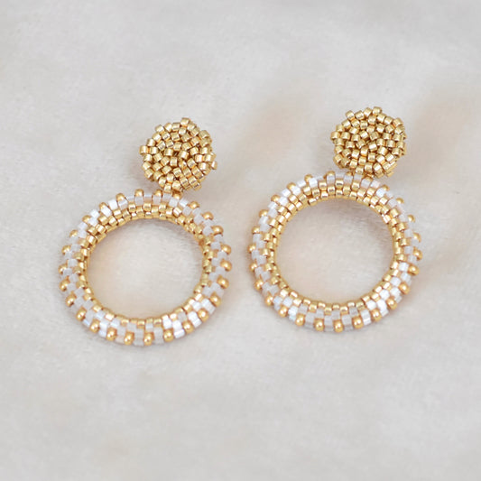 Kralen oorbellen goud en wit