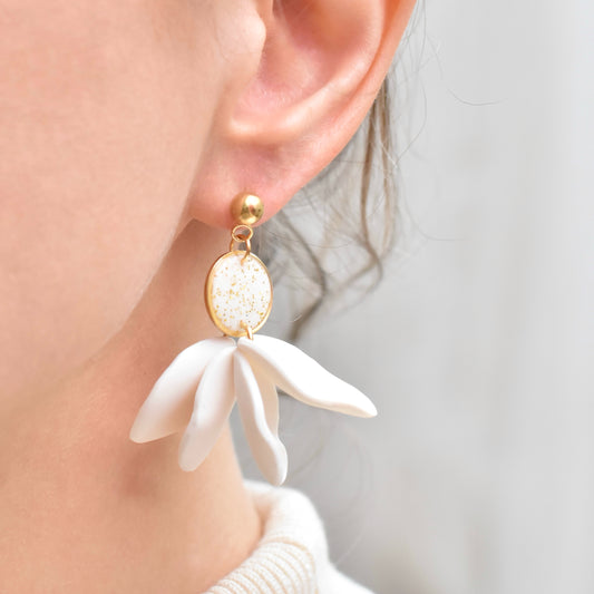 Beige bloem oorbellen aan druppel - 18k gold plated