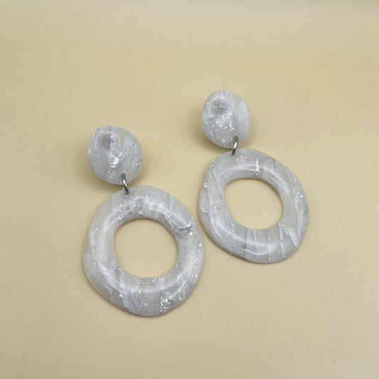 White and silver organic donut oorbellen