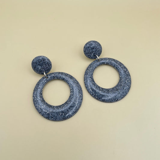 Donkerblauwe organic donut oorbellen