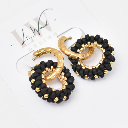 UitverkochtLuna Drops kralen oorbellen - Zwart