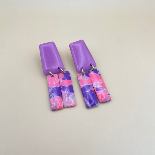 Rectangle paarse oorbellen