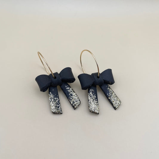 Zwart en gouden strik druppelvorm oorbellen