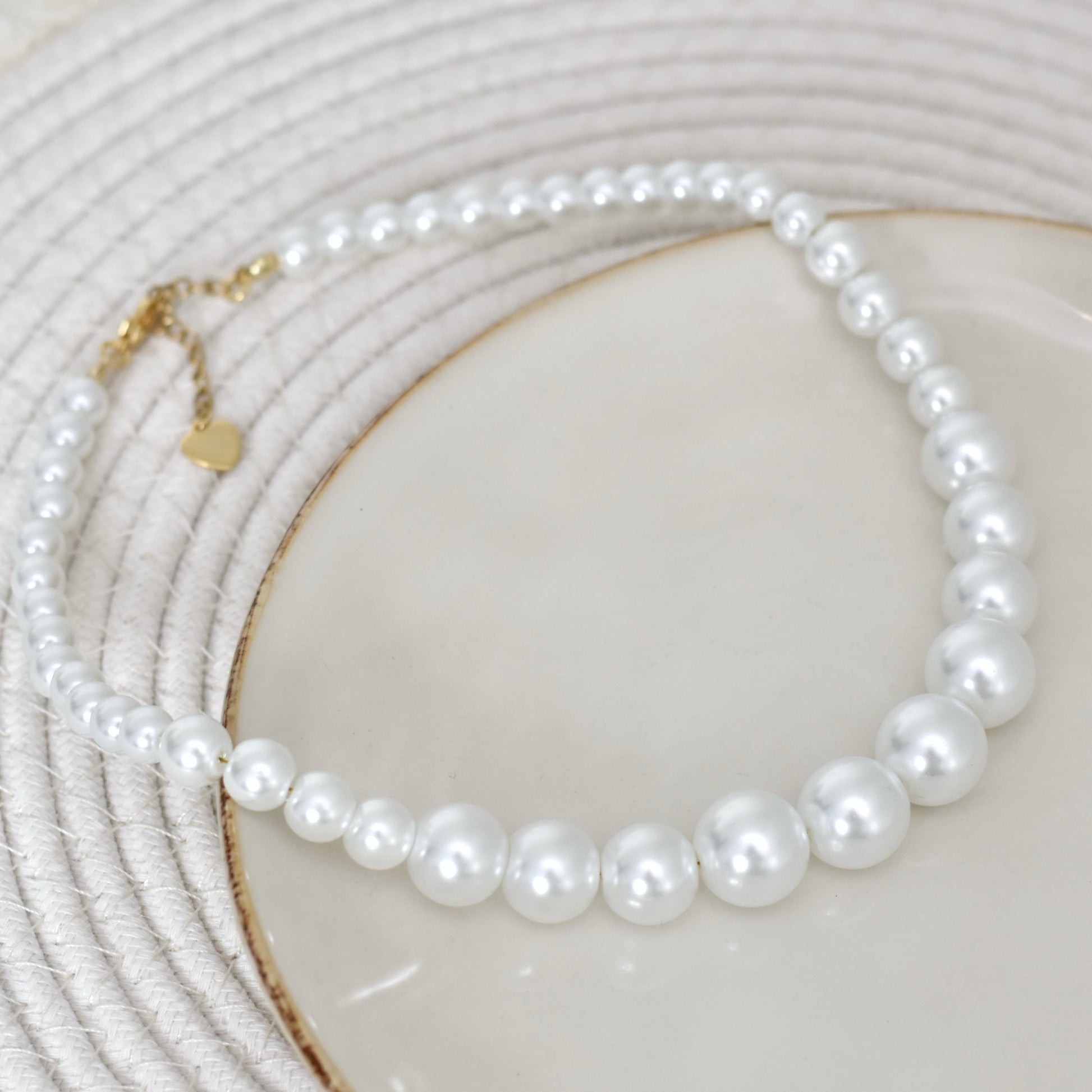Maak een statement met deze bold pearl ketting van La Wood Design! Deze handgemaakte parelketting loopt vanuit het midden van grote naar fijnere parels, wat zorgt voor een speels en elegant effect. De perfecte mix van klassiek en modern, een ketting die opvalt zonder te overdrijven.