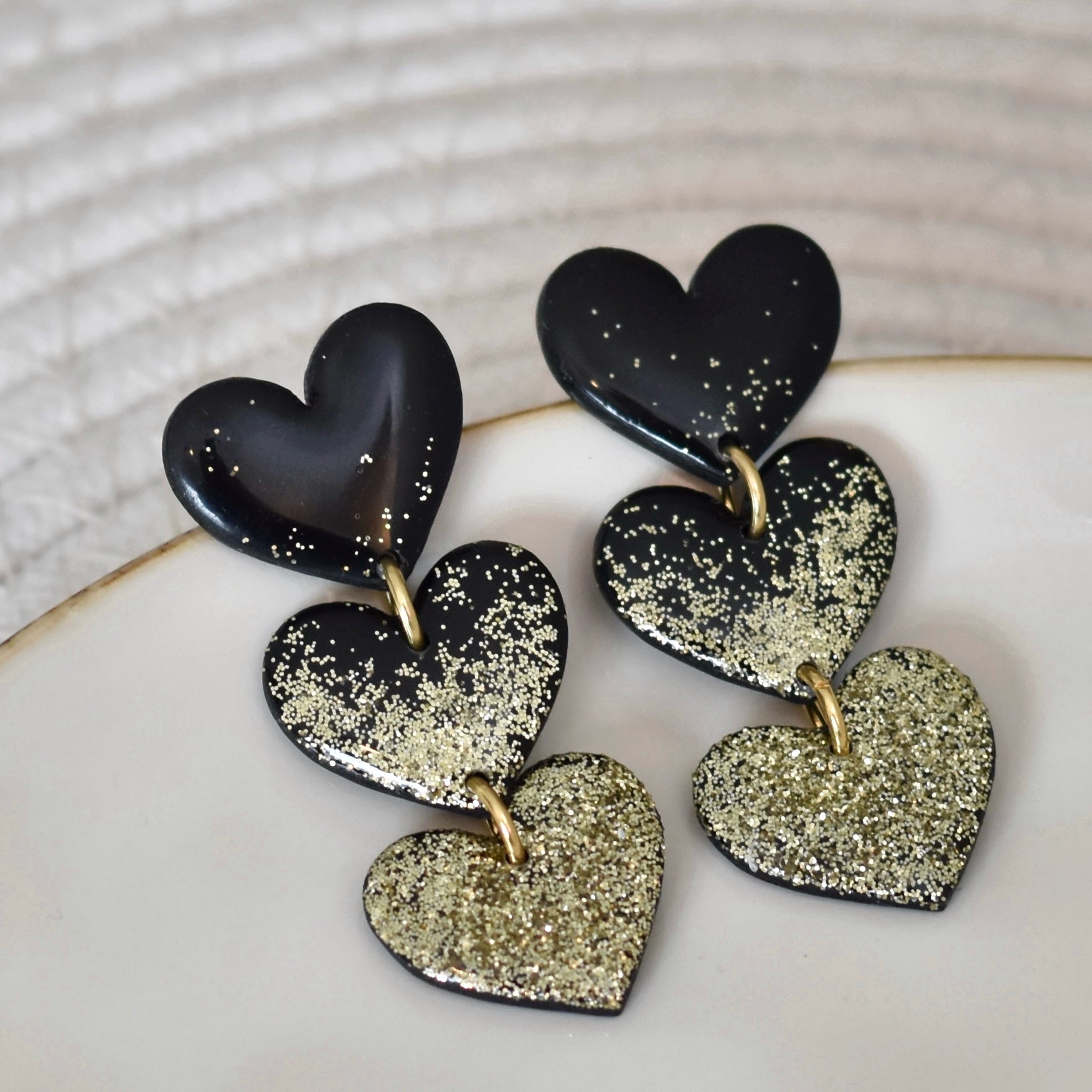✨ Het bovenste hartje is diep zwart met verfijnde glitteraccenten.