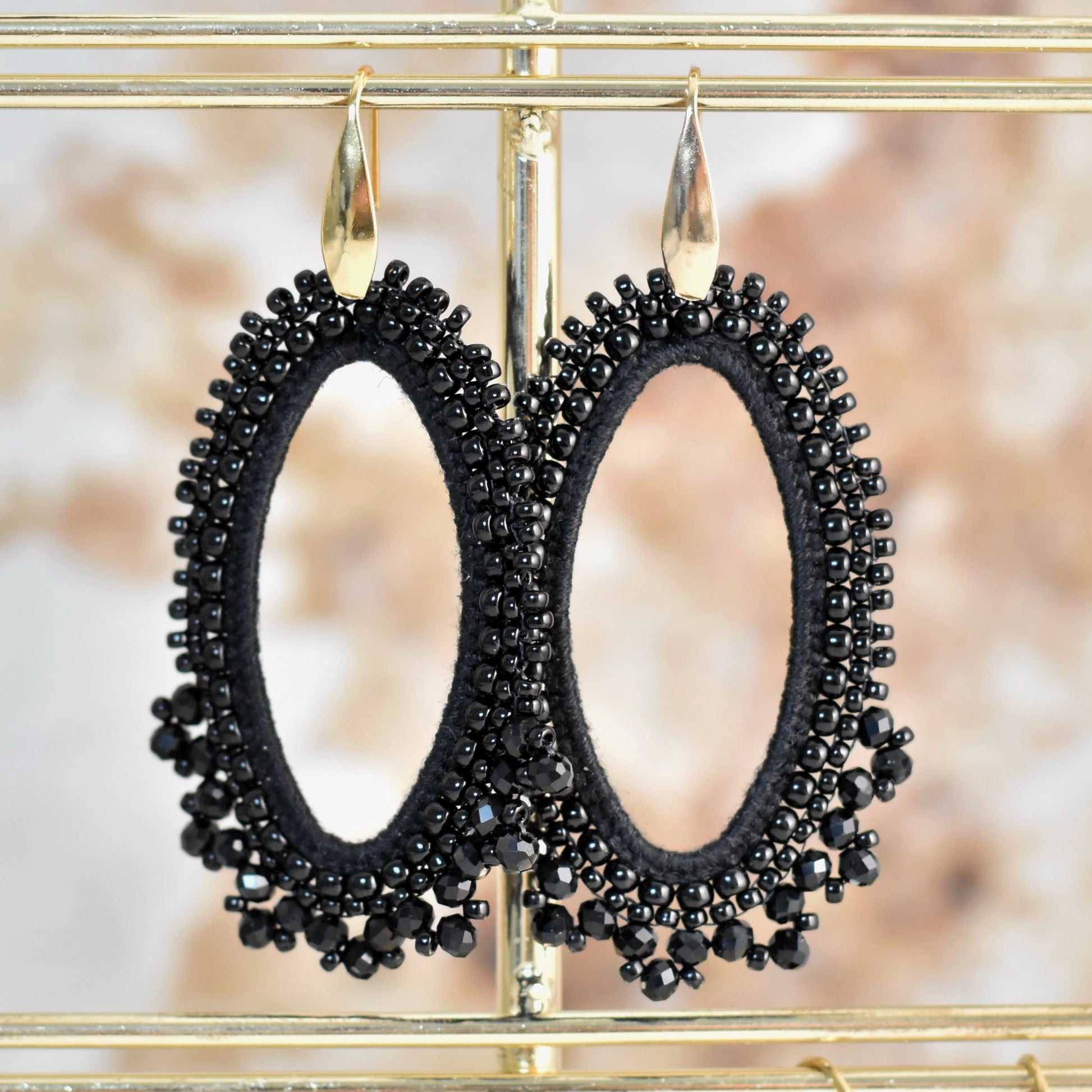 Laat je stralen met de Luna Drops, een paar handgemaakte oorbellen die elegantie en verfijning perfect combineren. De ovale vorm is omrand met kleine glaskraaltjes in het zwart, afgewerkt met speelse ‘druppeltjes’ aan de onderrand die zacht meebewegen bij elke stap. De goudkleurige stainless steel oorhaakjes geven een luxe touch en zijn gemaakt van rvs, ideaal voor gevoelige oren.