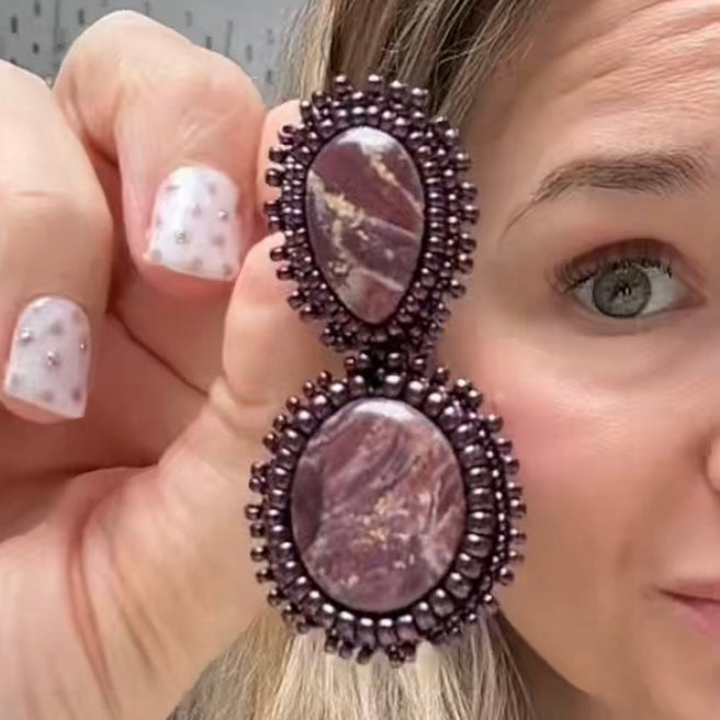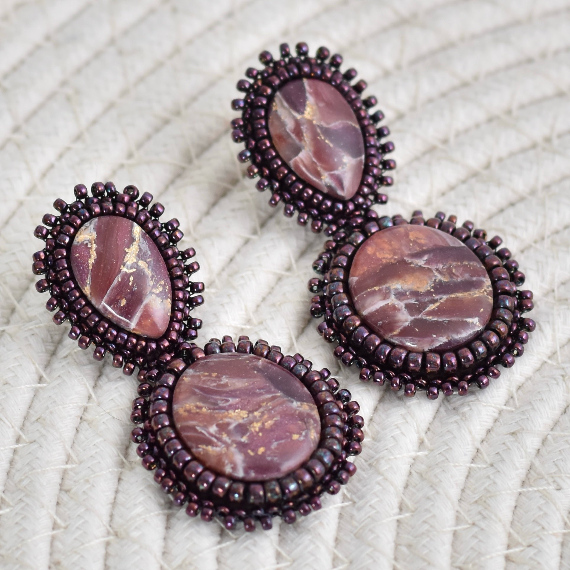 Gezien op TikTok. Deze prachtige burgundy/aubergine kralen oorbellen, zijn helemaal handgemaakt. Zelfs de Marmerlook steen in het midden is handgemaakt. De kleuren zijn zorgvuldig uitgezocht en op elkaar afgestemd. Hierdoor is ieder paar en zelfs elke oorbel uniek! Ben jij nog opzoek naar een prachtige set oorbellen die niemand heeft, bestel ze dan snel.