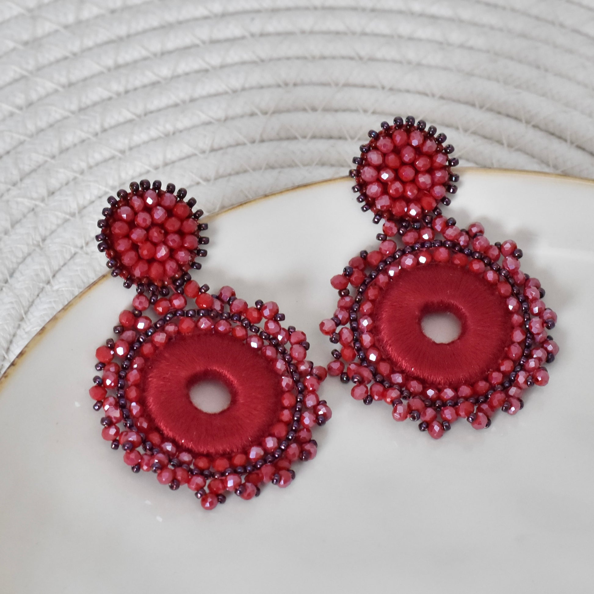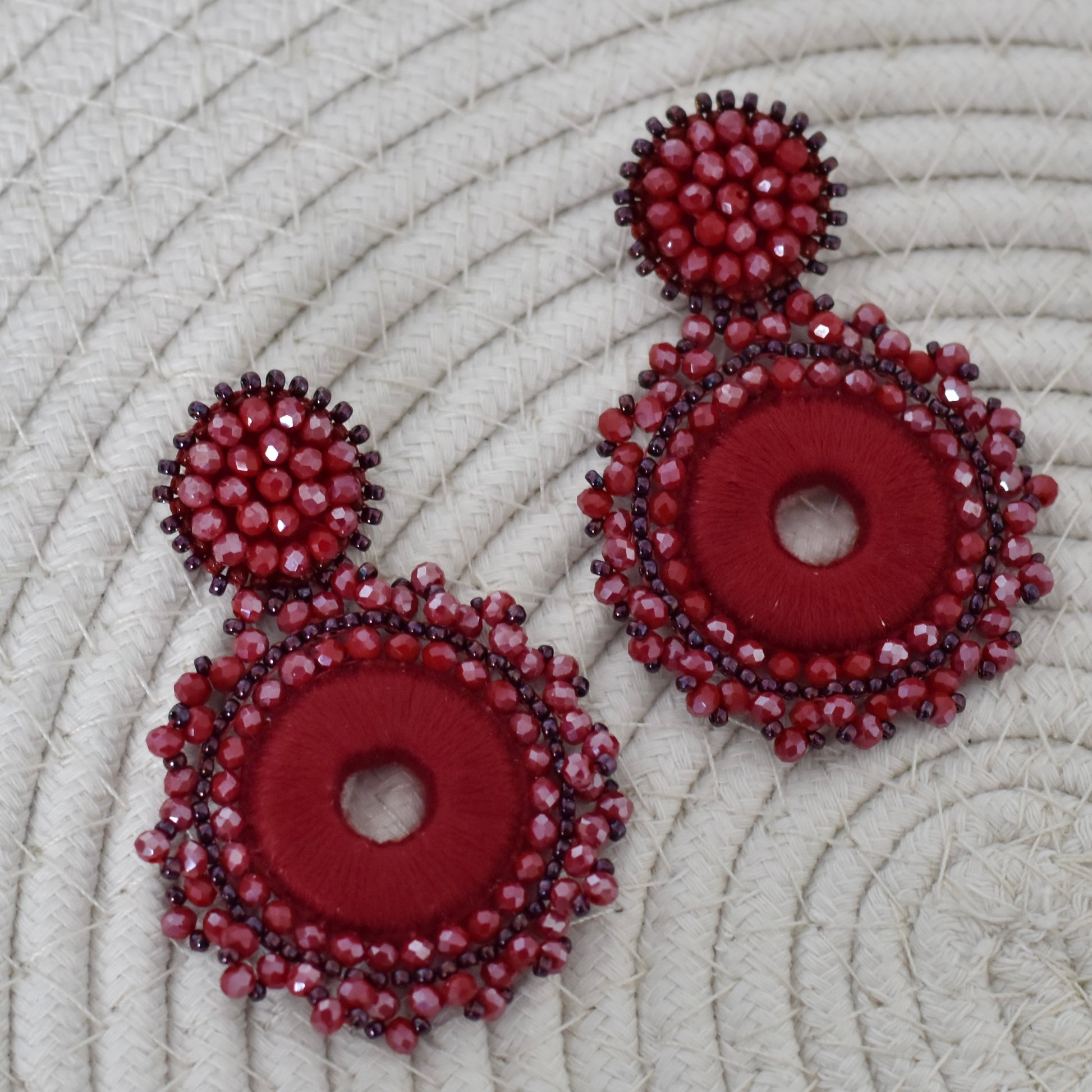 Val op met deze prachtige handgemaakte ronde kralen oorbellen in de kleur burgundy. De diepe, warme tint van burgundy geeft je outfit direct een stijlvolle en chique uitstraling. Elke oorbel is met zorg gemaakt, met glanzende facetkralen en een uniek rond design dat speels en elegant tegelijk is.
